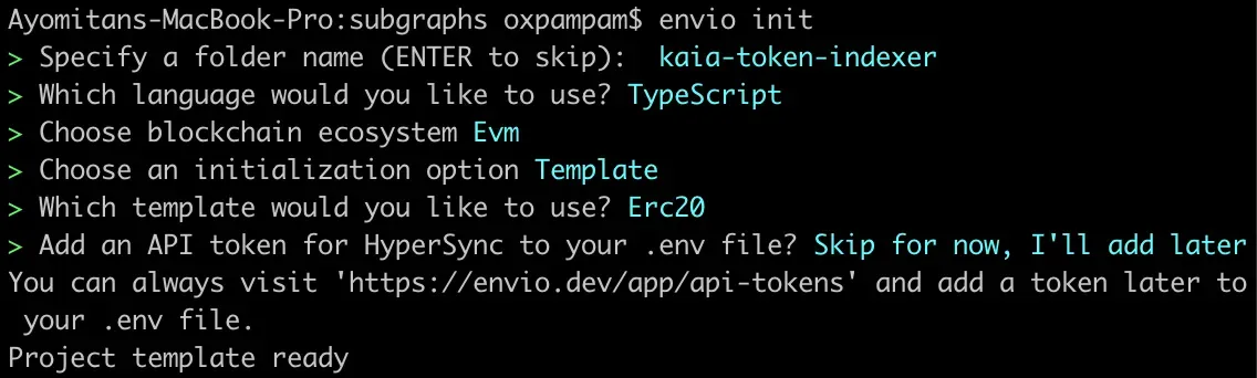 이제 envio와 사전 요구 사항들이 설치되었으니, 다음 단계는 인덱서를 초기화하고 KIP7 계약의 전송을 인덱싱하기 위한 기본 틀을 생성하는 것입니다.