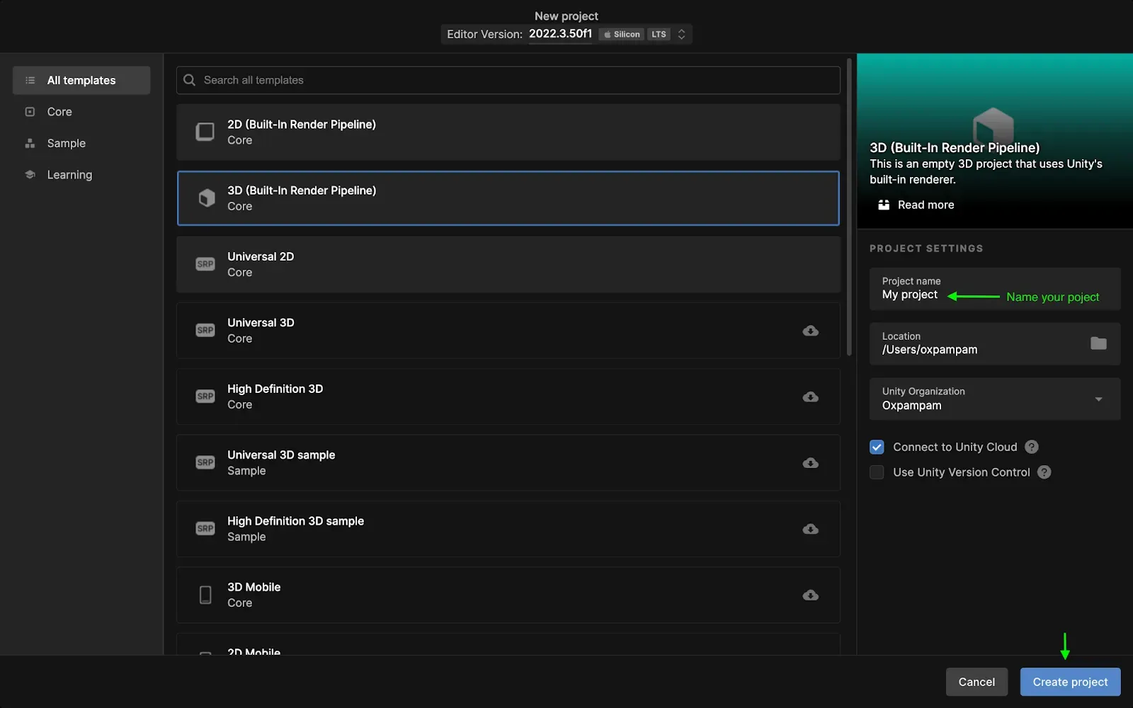 In this section, we will create 3 game objects with their corresponding sub-components, which are: