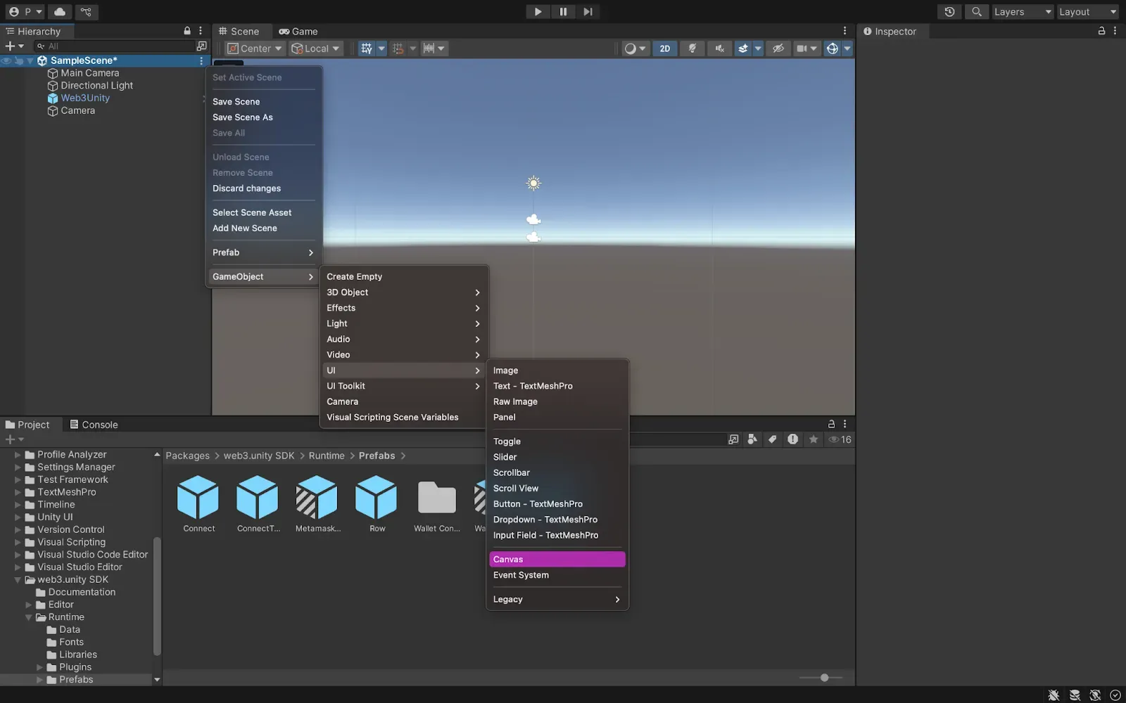 - Navigate to Packages > web3.unity SDK > Runtime > Prefabs